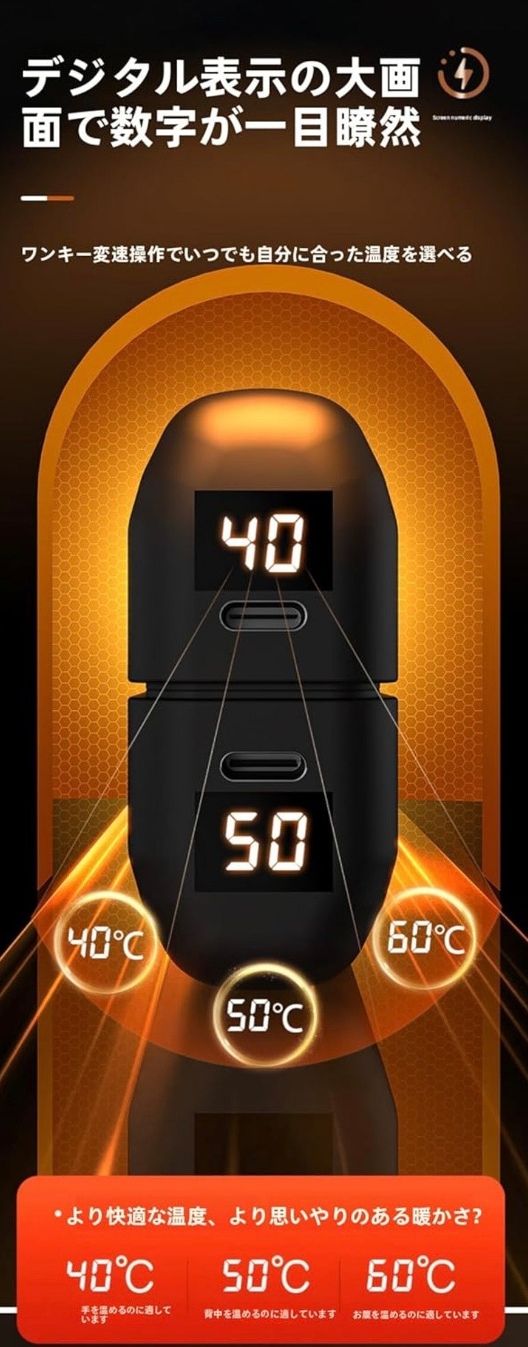 - 瞬時に発熱する優れた保温性能:電源を入れれば約10秒で心地よい温もりが広がります。均一発熱技術により、手の隅々までくまなく温め、寒い朝の通勤時や冷えやすいオフィスでも持続的に保温。充電式ではなく繰り返し使えるエコ設計で、コストパフォーマンスにも優れています。