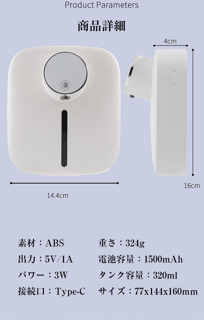 - 😍 高精度赤外線センサー搭載で、触れずにふわふわ泡が出てくる!手肌への雑菌移りをゼロに!